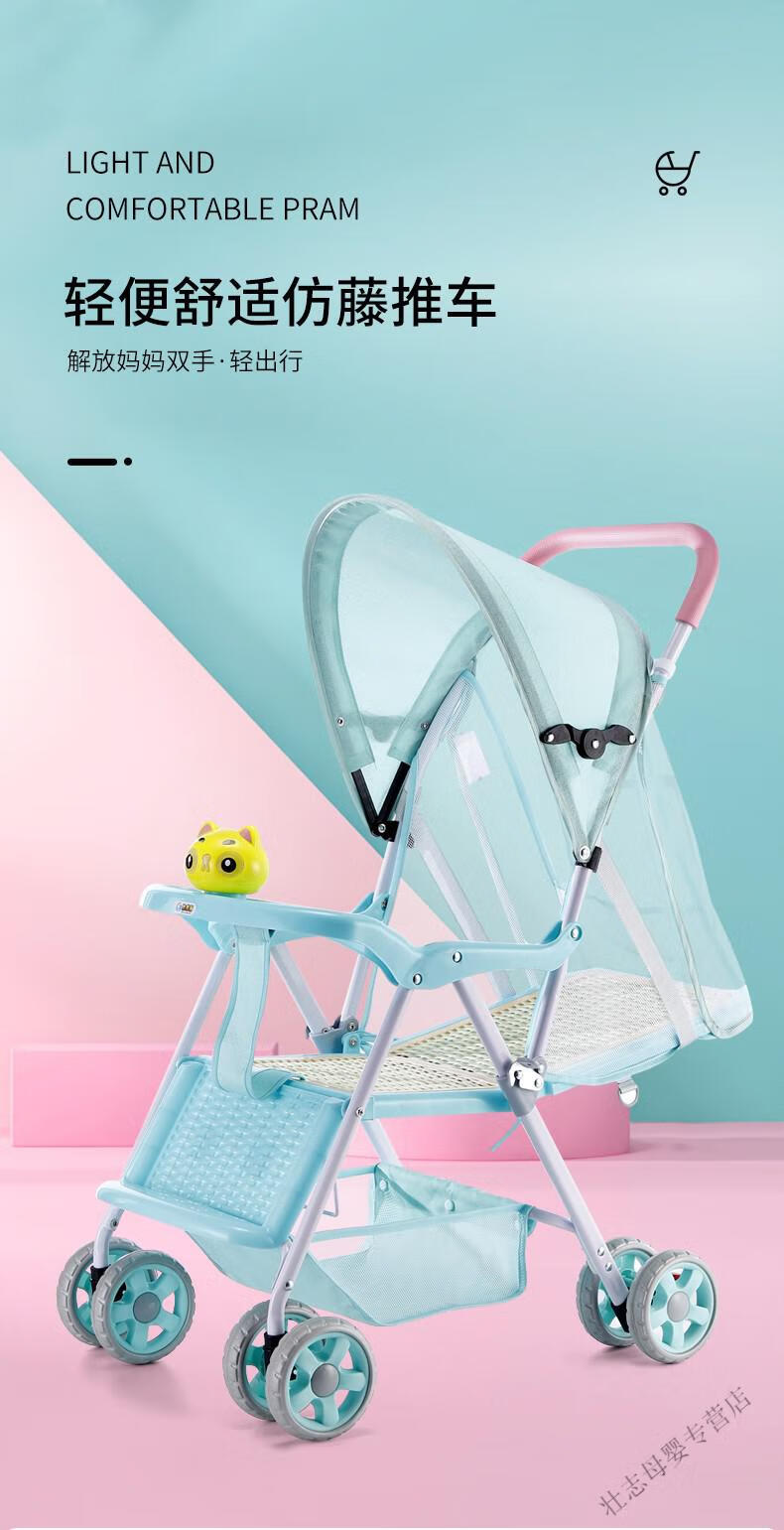 Enyao Baby Lightweight Portable Stroller Can Sit and Lie Down Baby and Toddler Hand Push Simple, Ultra Small, Portable Spring Green Basic+Six Wheels [Image Price Brand Quotation]-