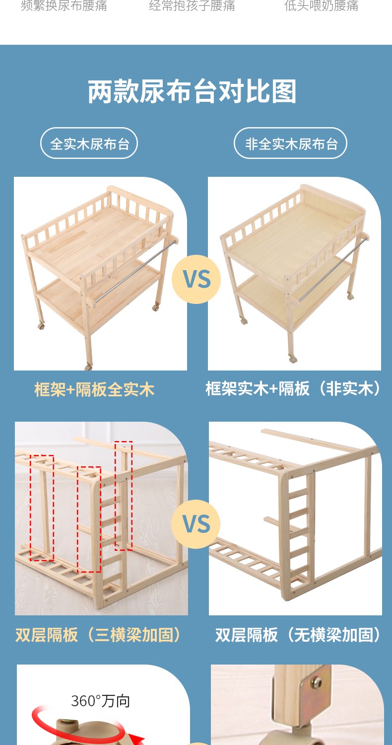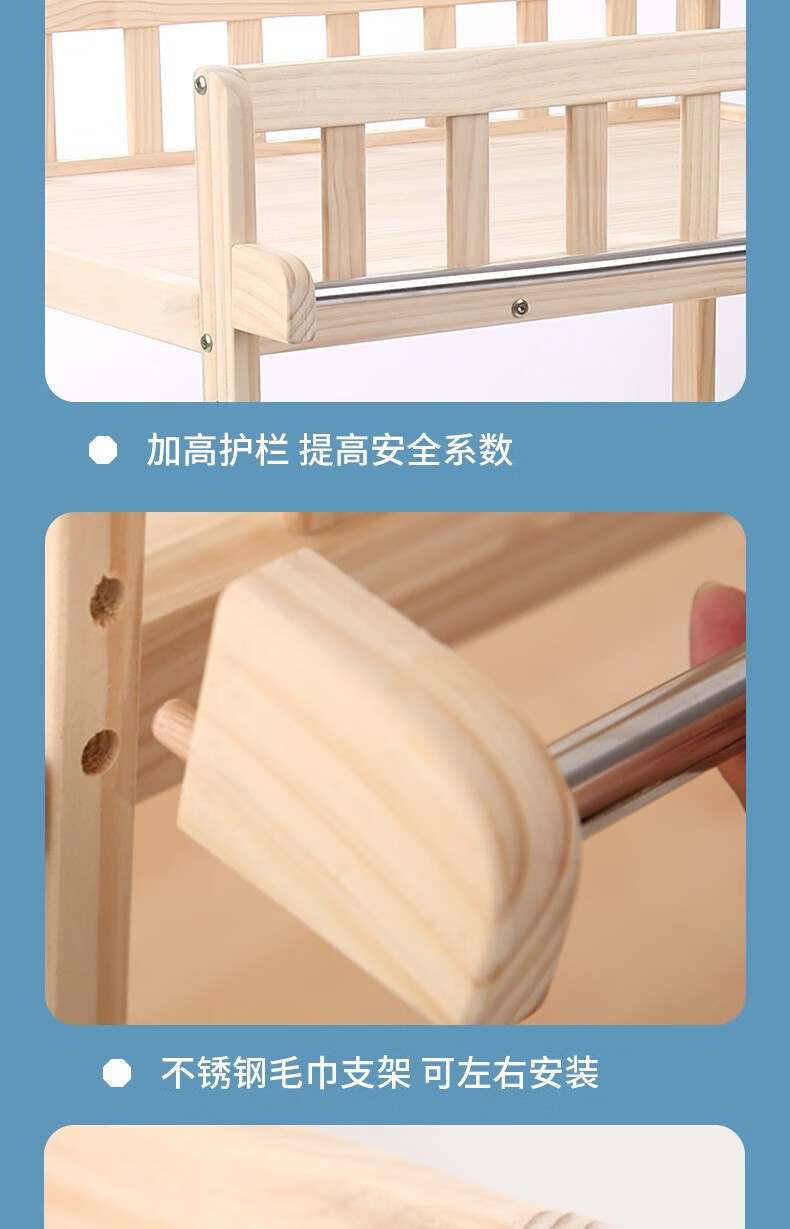 Baby Happiness Solid Wood Baby Changing Table Baby Changing Station Massage Bath Integrated Multifunctional Baby Newborn Cribbaby Changing Station Solid Wood Extension+Pink Forest Care Pad【