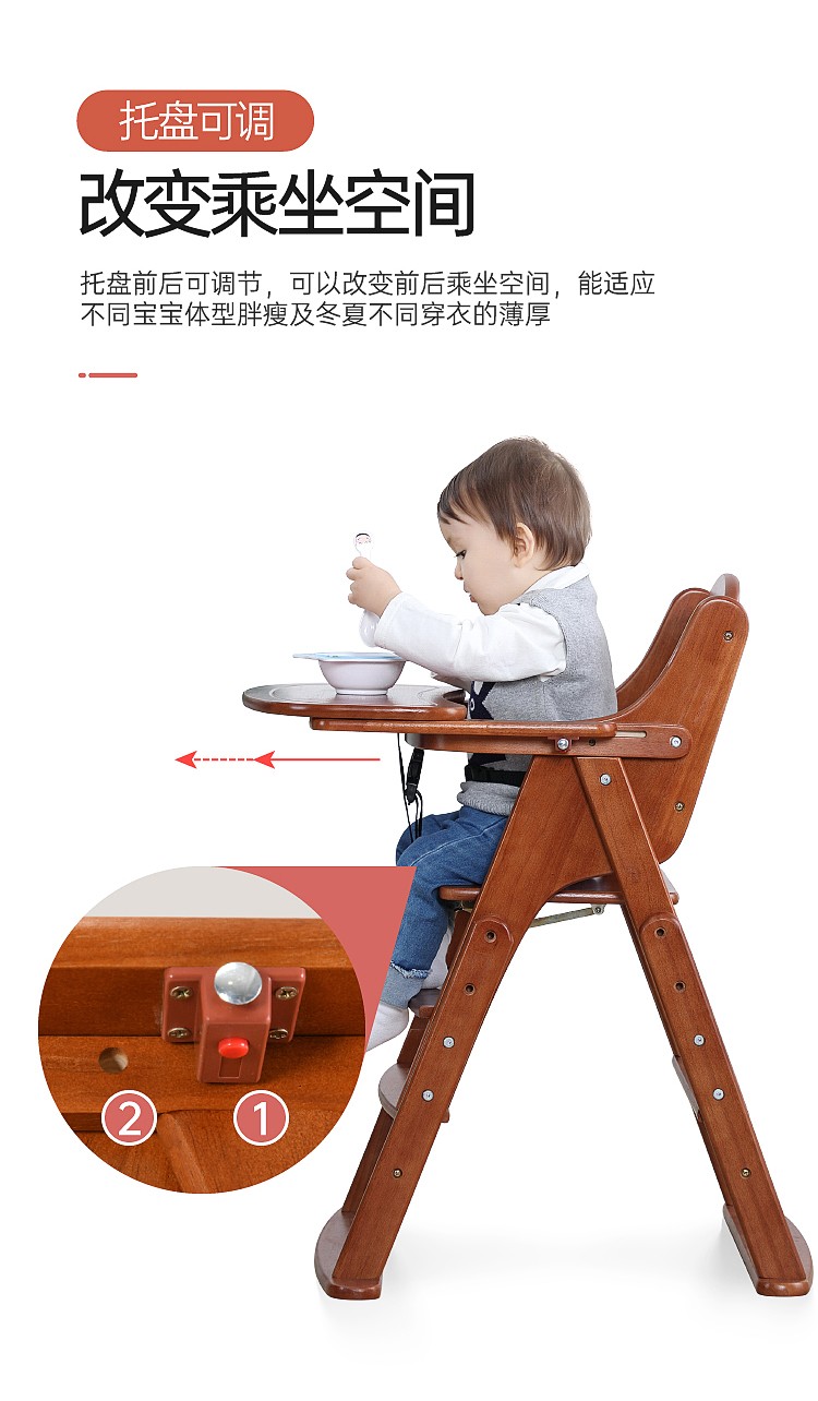 Bailiban Oak Baby Highchair Children's High Chair with Tray Solid Wood Portable Multi functional Portable Baby Highchair Adjustable Baby Highchair
