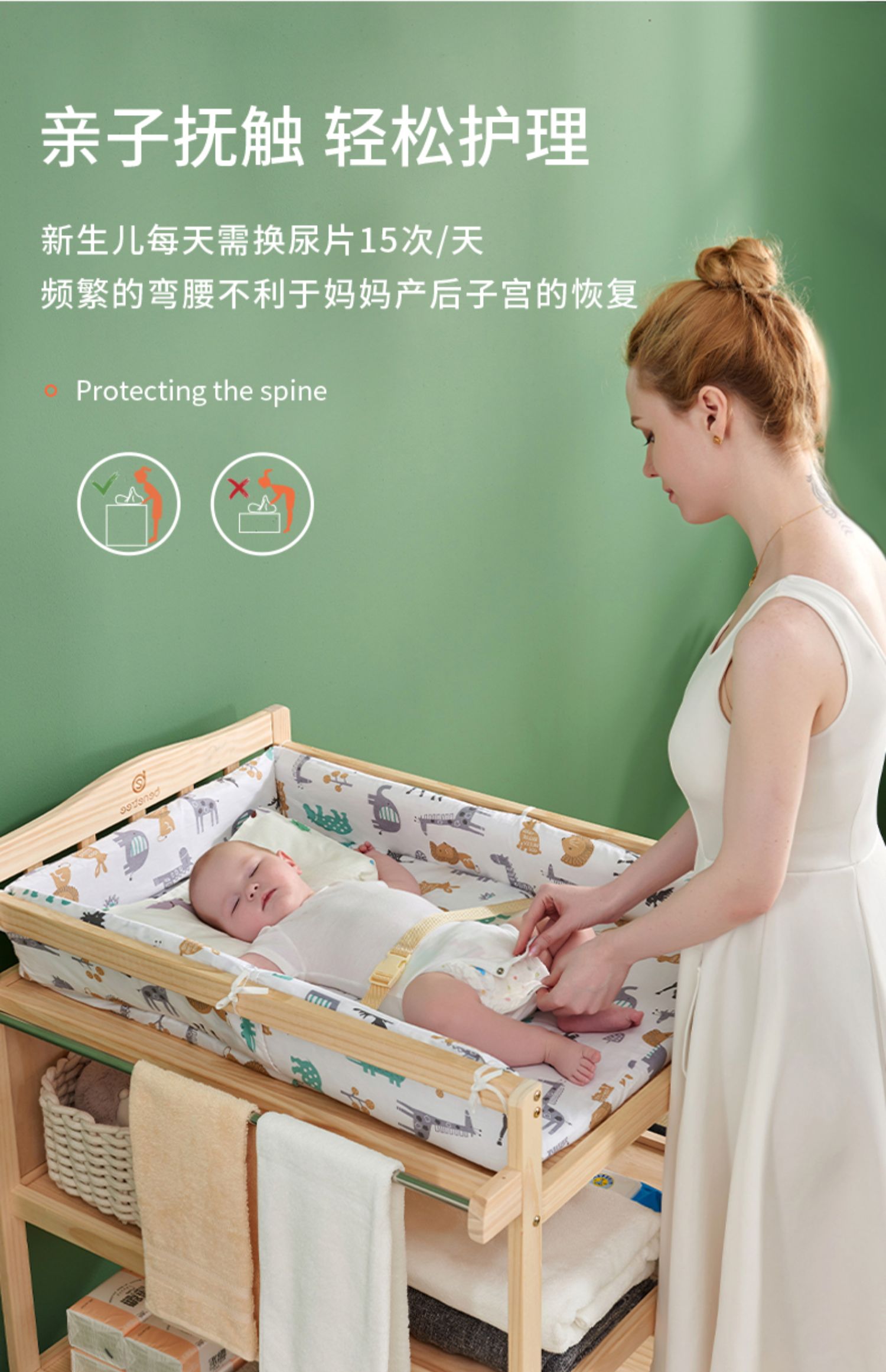 Solid wood baby changing table Baby changing station Massage bath integrated multifunctional baby changing table Newborn baby changing washing table Double layer changing table (partition all solid wood)+Ocean World