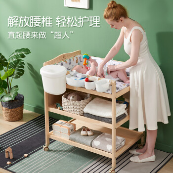 Solid wood baby changing table Baby changing station Massage bath integrated multifunctional baby changing table Newborn baby changing washing table Double layer changing table (partition all solid wood)+Ocean