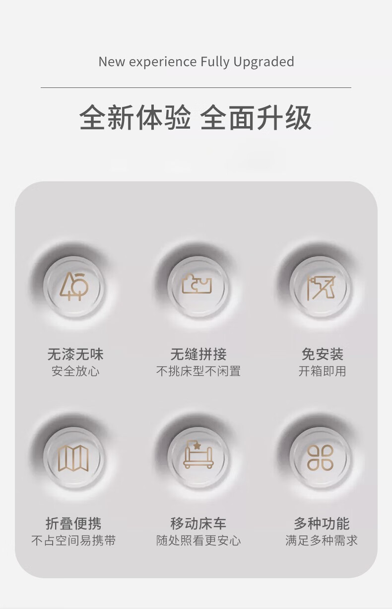 | Function: Portable, adjustable height, extendable, with bed stop | Function: Portable, adjustable height, extendable, with bed stop |