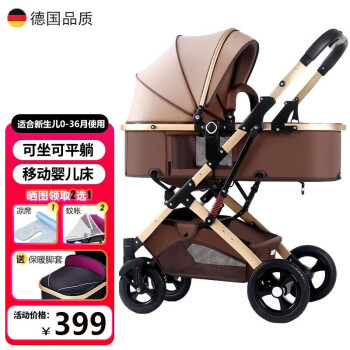 Ascari Baby Stroller can sit, lie down, and be portable. Baby Stroller has a high landscape, two-way baby stroller, flagship champagne, gold, carbon steel material, and two-way push